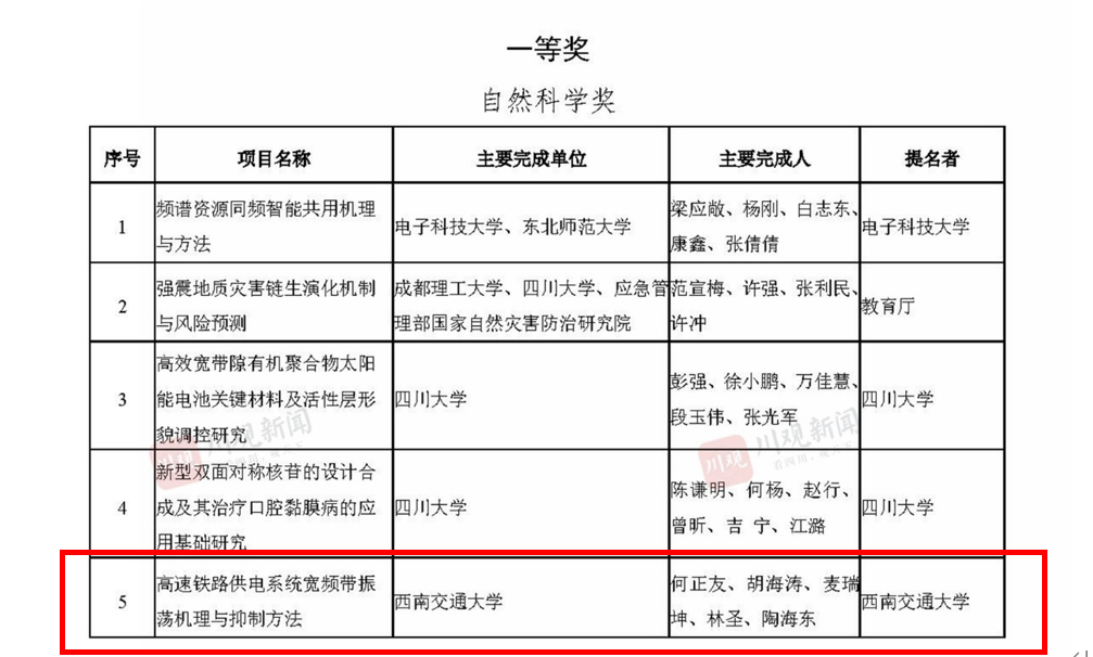 据悉,共有14项成果获四川省自然科学奖,其中5项成果荣获一等奖。